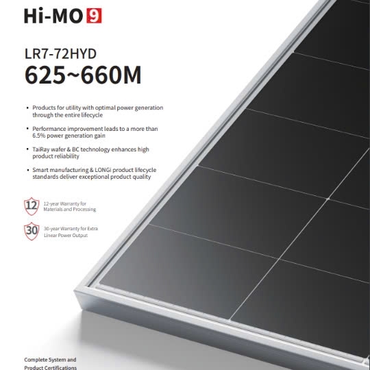 Tấm Pin NLMT LONGI HI-MO 9 LR7-72HYD 625~660M